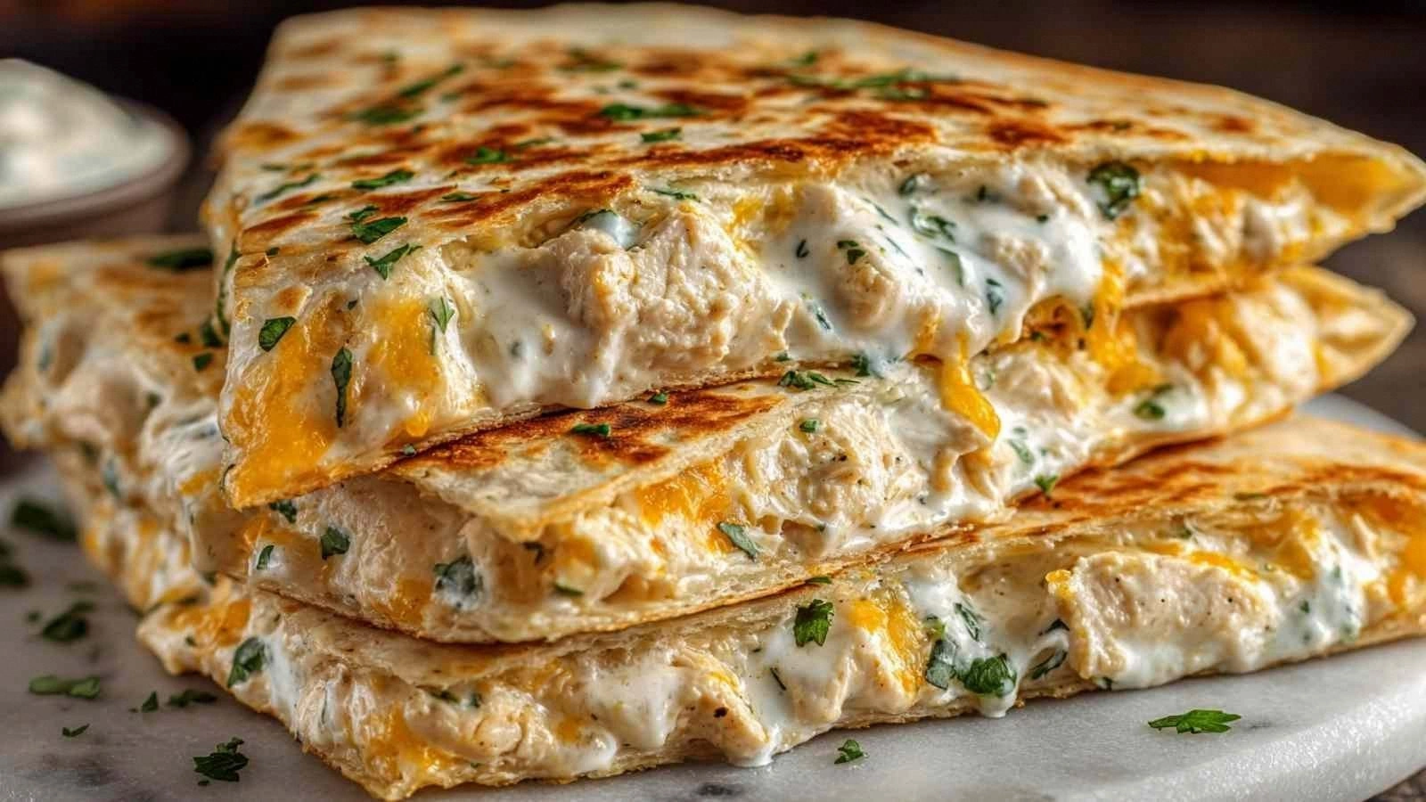 Replace the ranch with a smoky chipotle mayo, add diced mango, and use corn tortilla for a sweeter, earthier flavor. The mango pairs beautifully with the spicy mayo and gives the quesadilla a tropical twist.