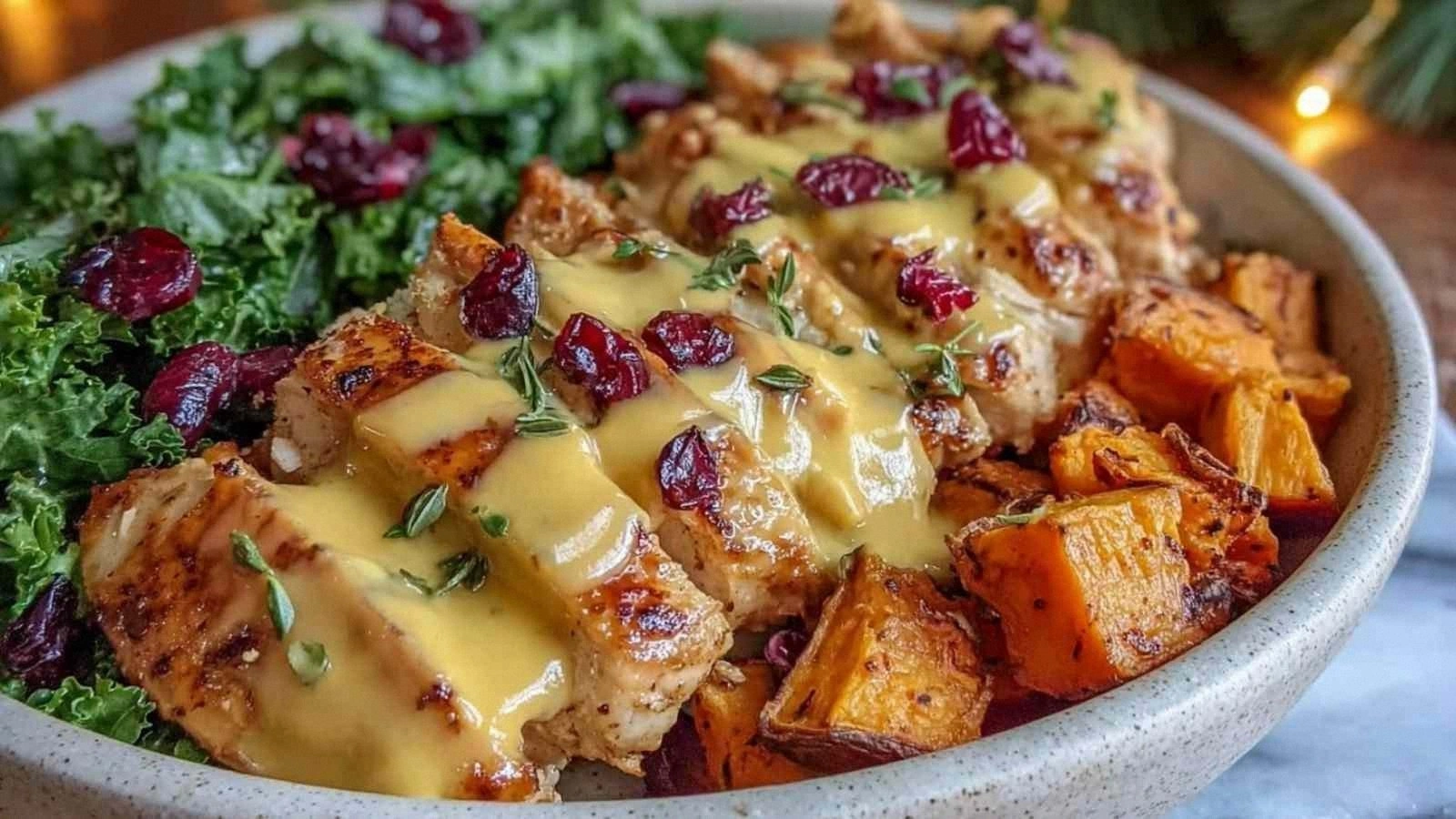 Serve immediately, and watch as the bowl melts together in a symphony of flavors. The sweet maple, tangy mustard, and savory chicken create a harmonious balance that’s impossible to ignore.