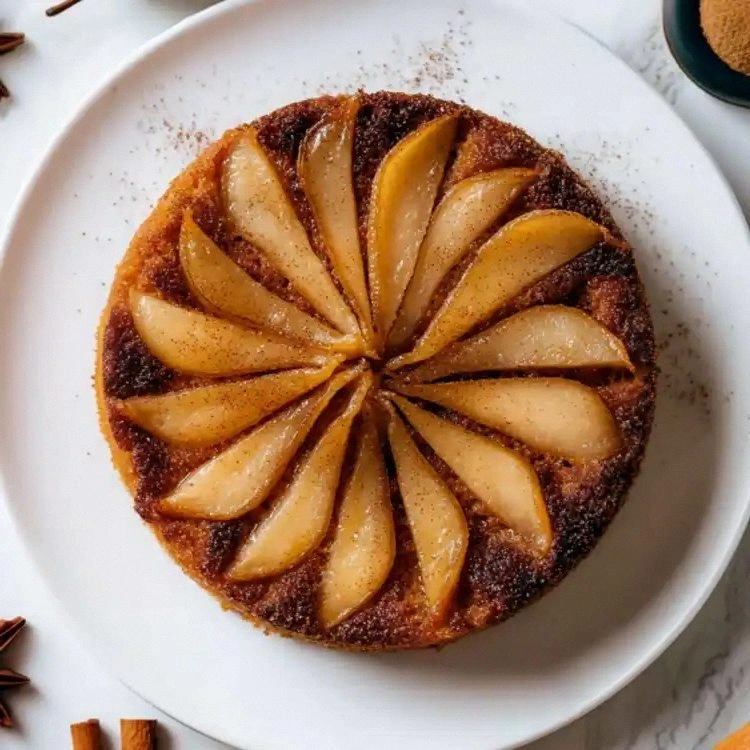 Picture this: the kitchen lights dim, the oven hums at 375°F, and the scent of warm butter, toasted sugar, and cinnamon swirls through the air. The pears, sliced into thick, juicy wedges, sit patiently in a buttery base, their skins shimmering like polished amber. When you lift the finished cake, the caramelized top glistens, and the aroma is so rich it could convince a cat to eat dessert. You’ll hear the gentle crackle as the sugar caramelizes, feel the gentle rise of the batter, taste the subtle heat of nutmeg and cloves, and see the glossy finish that promises a buttery crunch with every bite.